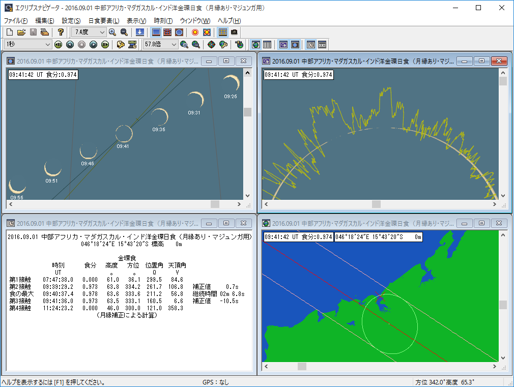 日食ソフト「エクリプスナビゲータ Ver.2.5」用日食要素を公開、9月1日アフリカ金環の月縁補正に対応