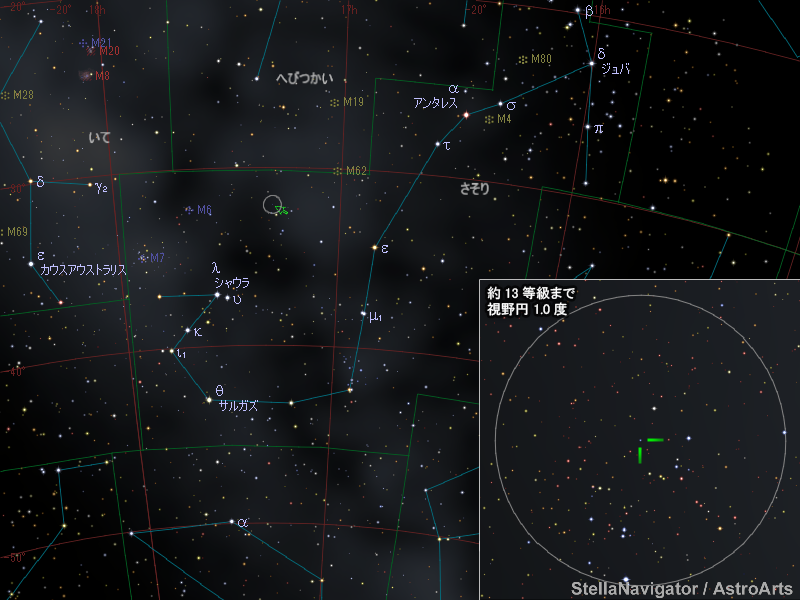 さそり座の新星の位置。画像クリックで星図拡大(「ステラナビゲータ」で星図作成)