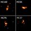 野辺山45m電波望遠鏡の観測により、オリオン座の方向で星がまさに誕生している現場の目録が作られた。これらの現場をアルマ望遠鏡が撮影し、ガスが作る不思議な構造をとらえた。