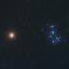 2月下旬から3月上旬ごろ、夕方から深夜の西南西から西の空で、火星とプレアデス星団が接近する。最接近は3月4日ごろ。