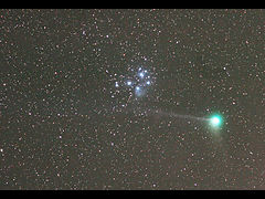 彗星とスバルとの接近は1986年のハレー彗星以来のことと思います。ハレーの場合はプレアデス星団により接近していました。当時、日経の駅貼り新聞写真ニュースにも掲載され話題になりましたね。