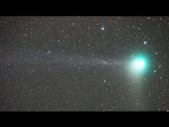 (3枚目)約50分間隔で撮影した画像にて立体視用に作成しました。グーッと浮き上がる彗星の姿を印象的に見ることができます。見やすくするため画像処理を強度に行いました。