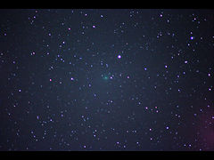 久しぶりに天頂あたりで肉眼で3~4等星まで観られる空に恵まれ、眠かったのですが追いかけてみました。眼視ではまだ認められなかったのですが、写真ではまだ々明るいようで、ひじょうに写真写りがよい彗星ですね。