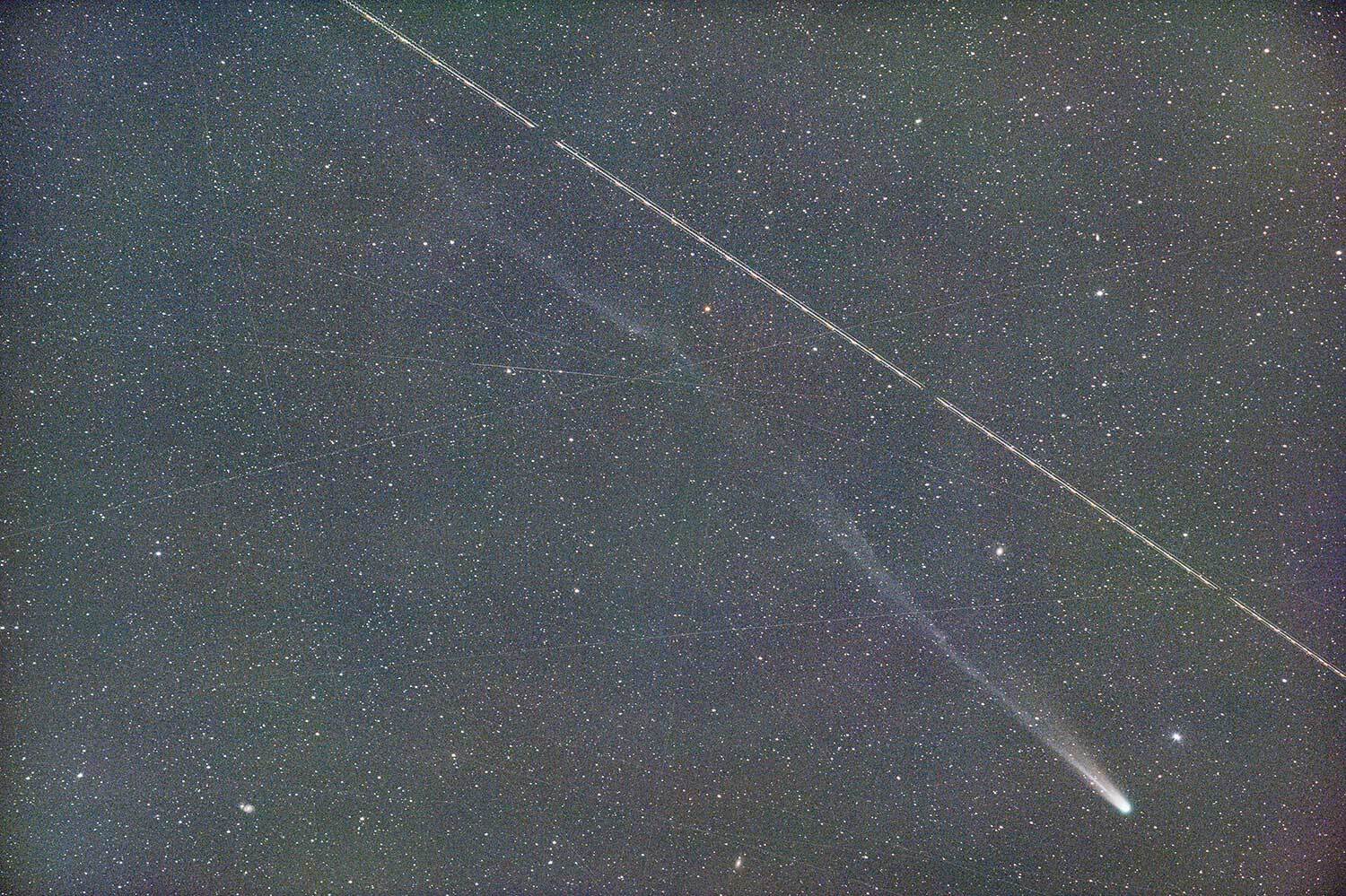 今日は阿蘇二重の峠周辺には雲が張ったので、西原村方面へ向かいグリーンロード沿い駐車場で撮影しました。20s12枚から強調してます。尾は画像の端まで13度強あります。尾が伸びているので135mmを使いましたが、収まりませんでした。縦アングルにするか、もっと短焦点にすべきでした。