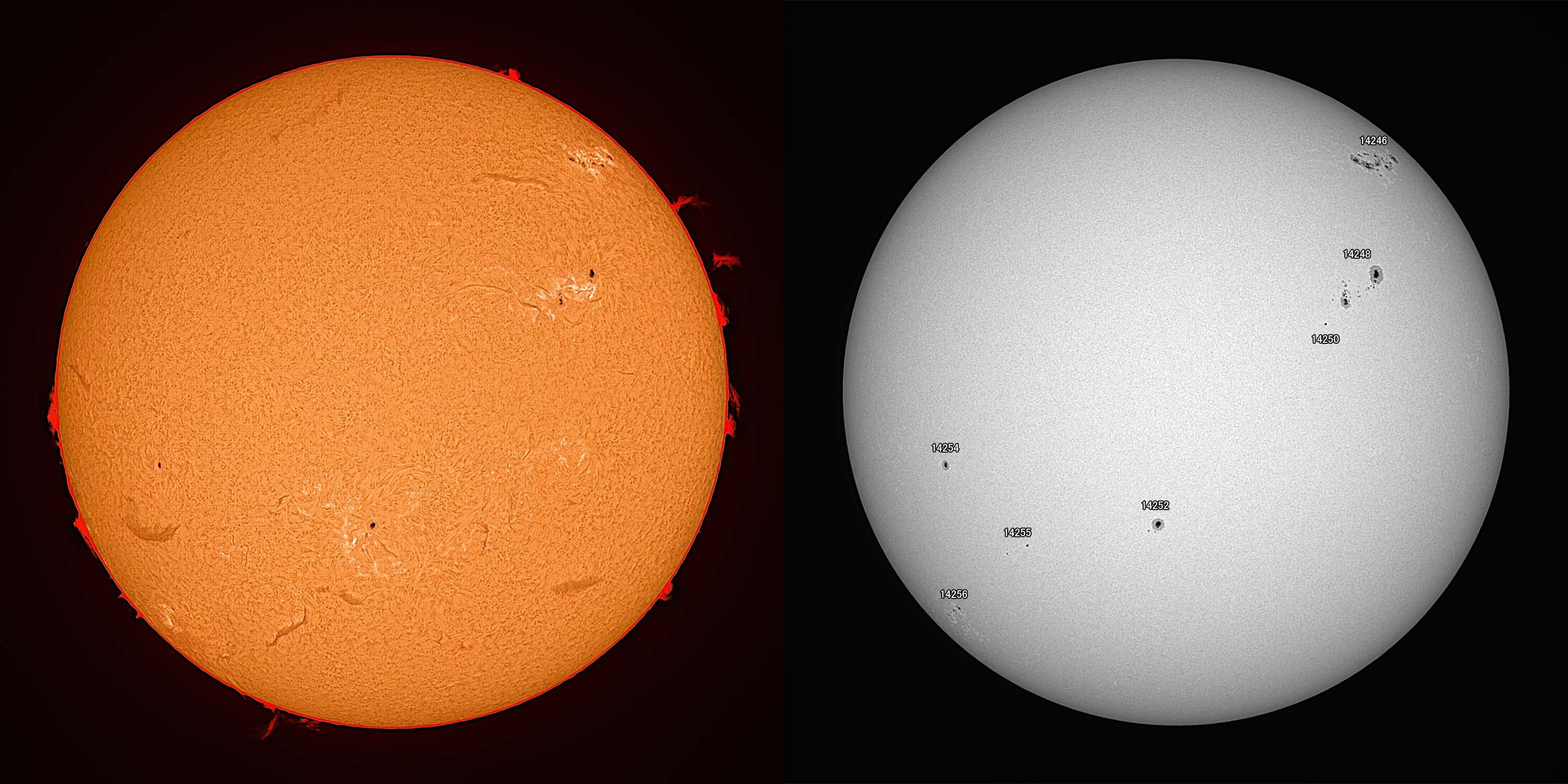 光球面:FireCapture、ROI 3600x2400、Gain 100、1.95msec x1000、撮影時間 31秒/プロミネンス:FireCapture、ROI 3600x2400、Gain 300、1.95msec x1000、撮影時間 31秒