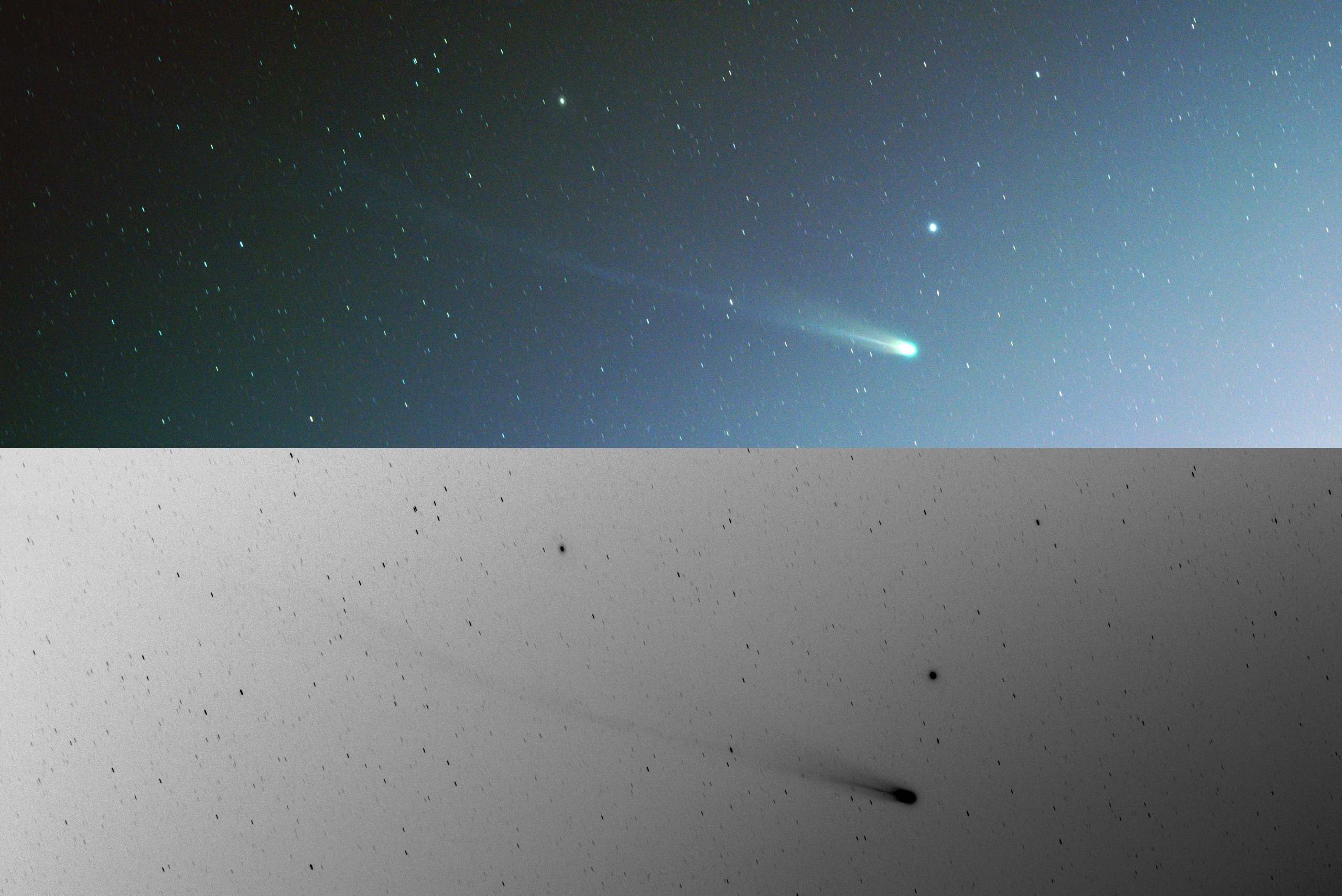 撮影開始 3時間前までの雨があがったばかりで水蒸気が多め。 8×42双眼鏡で短い尾は見えたものの、肉眼では頭部の存在も確認できませんでした。