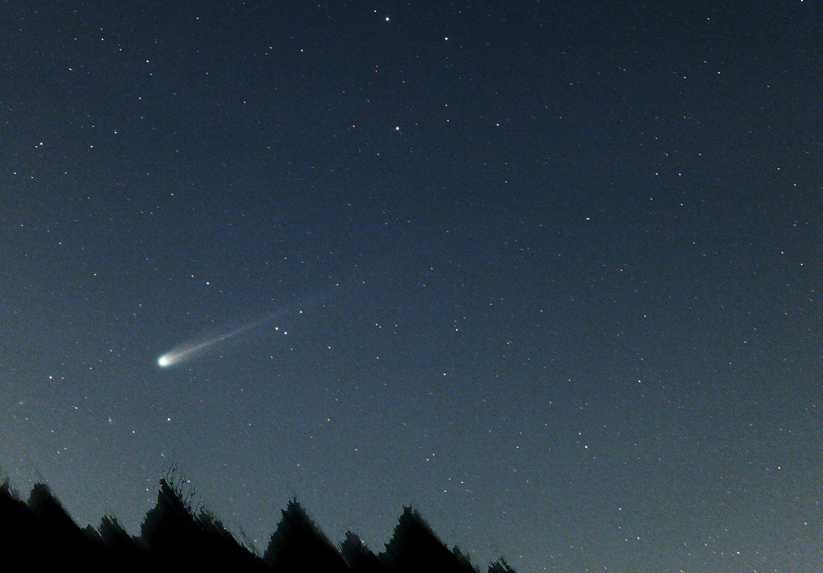 夕方のレモン彗星は長野県八千穂高原(標高1700m)で撮影してきました。山陰に沈みそうなので薄明終了前からのスタックです。