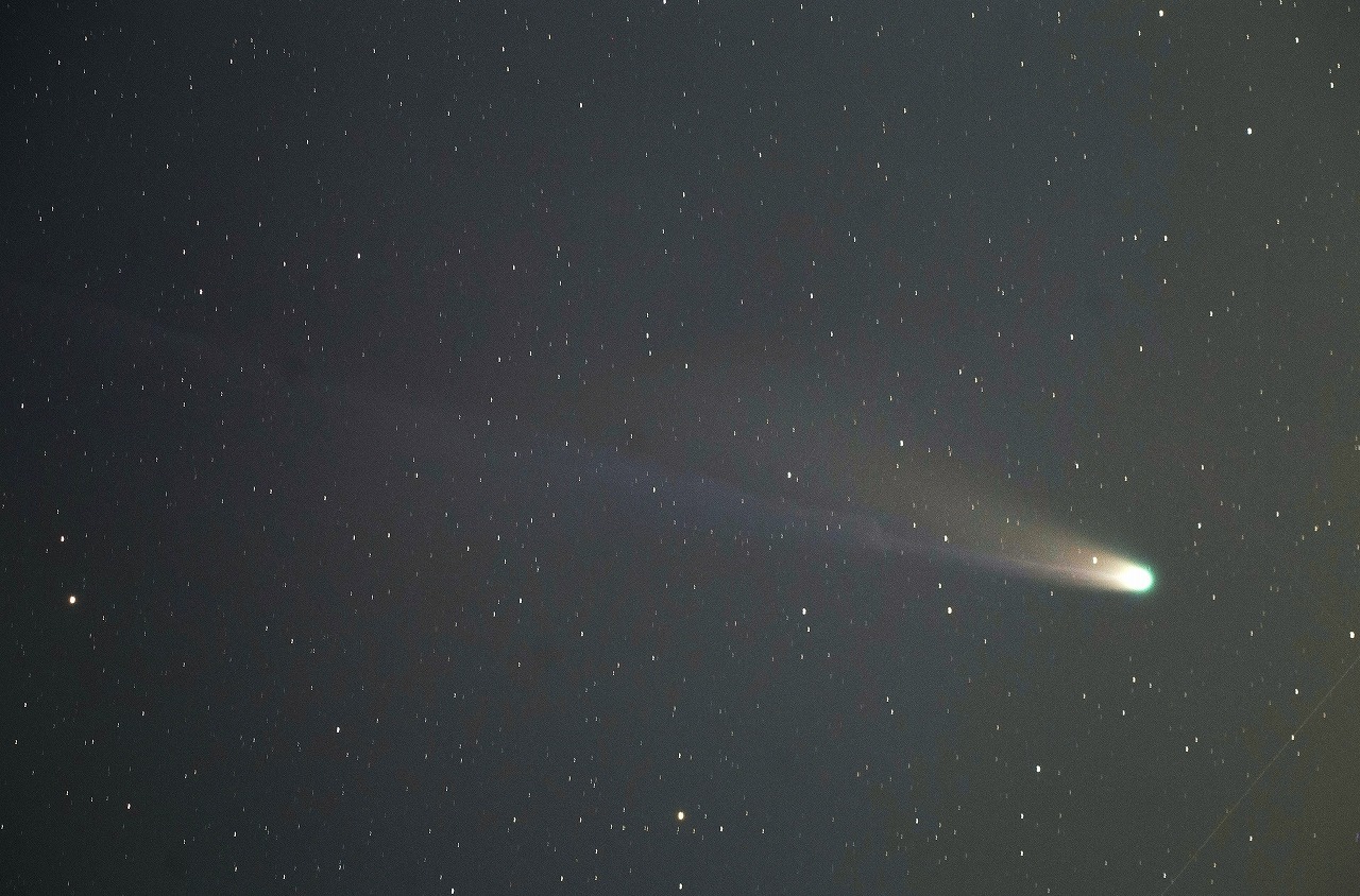 彗星の場所がわかっていてのことですが、暗い空のもとで、肉眼でもかすかに見えます。近くのホテルの照明が明るく肉眼で見るにも、撮影するにも不向きの場所になってしまいました。