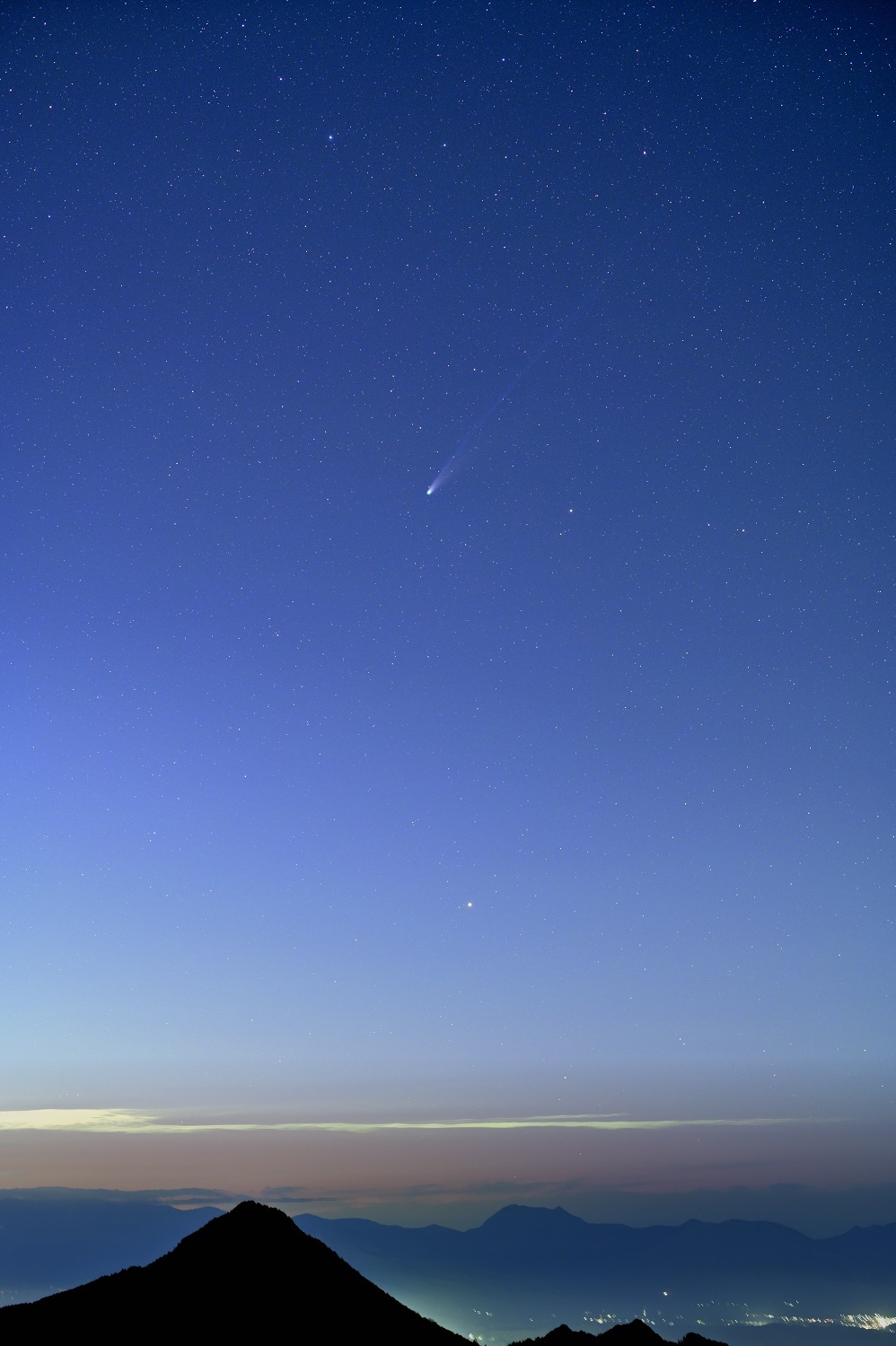 トワイライトタイムのグラデーションを背景に宵のレモン彗星 (C/2025 A6)をノクト(58mm)で捉えた画像になります。 2024年10月の紫金山・アトラス彗星(C/2023 A3)とはいかないまでもトワイライトタイムのグラデーションとの共演を肉眼で鑑賞し満足度の高い遠征になりました。