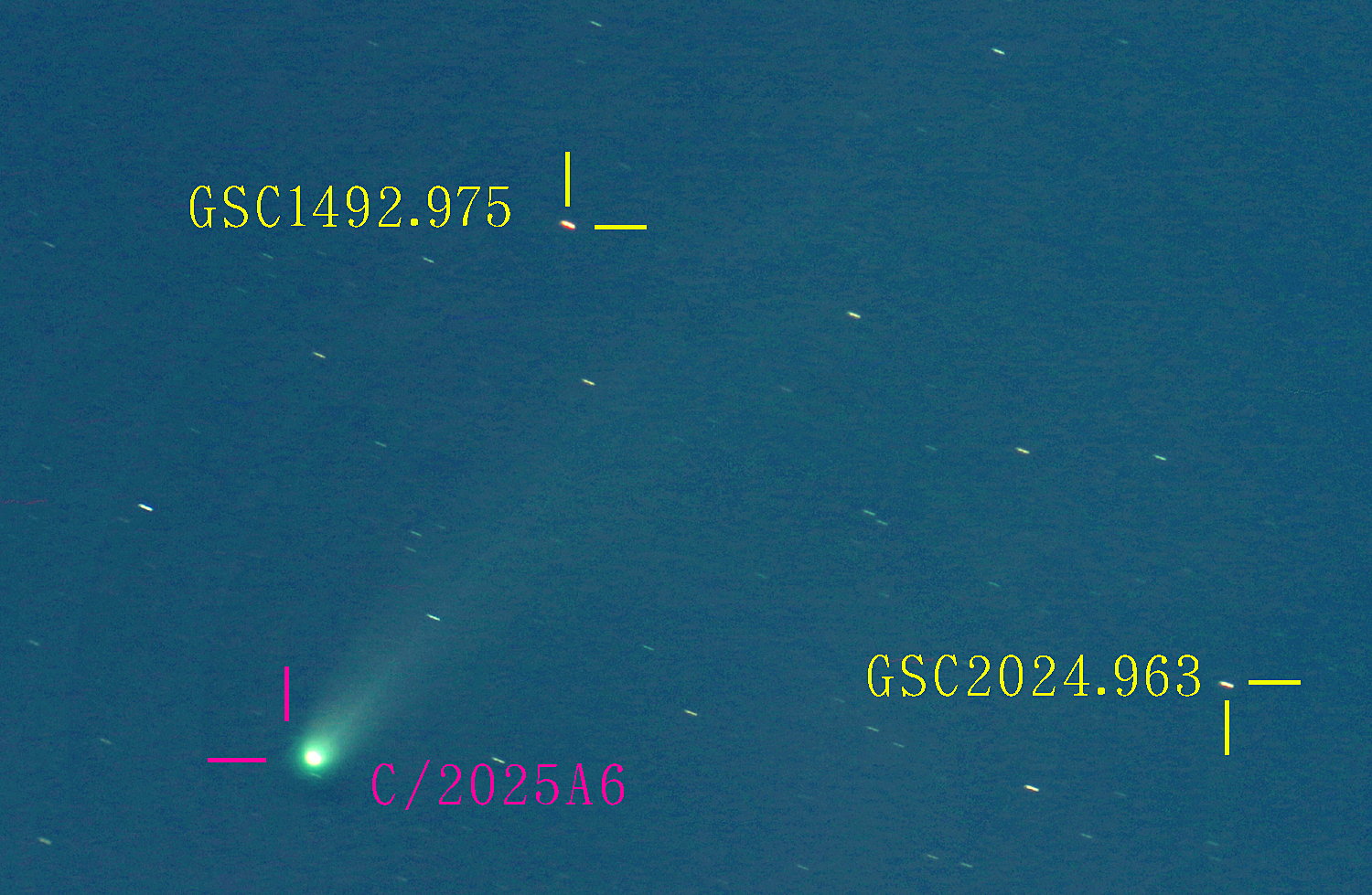 サザンクロスレモン彗星(C/2025 A6) 10月24日 400mm (彗星核コンポジット)
