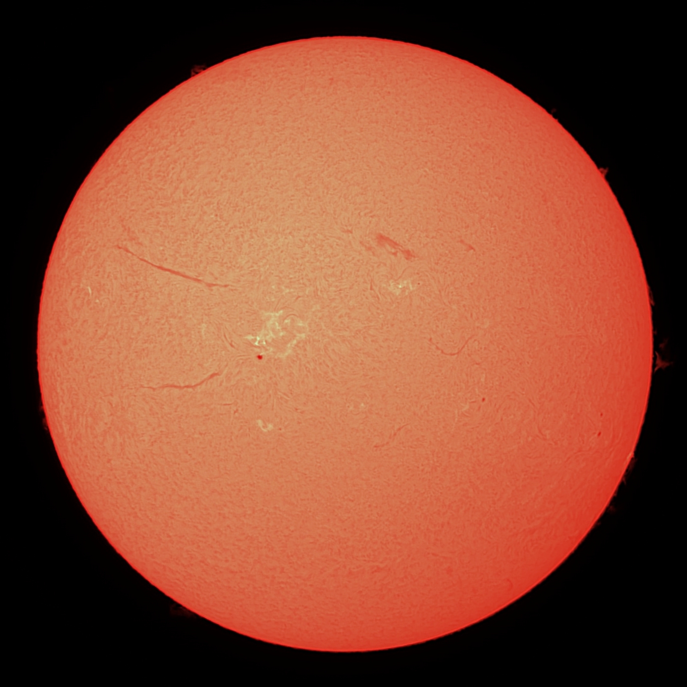 10/28の太陽です。実に9日ぶりです。当地はなかなか天候が悪く、冬型の気圧配置が続くと晴れそうです。太陽は3時方向のプロミネンスが印象的です。