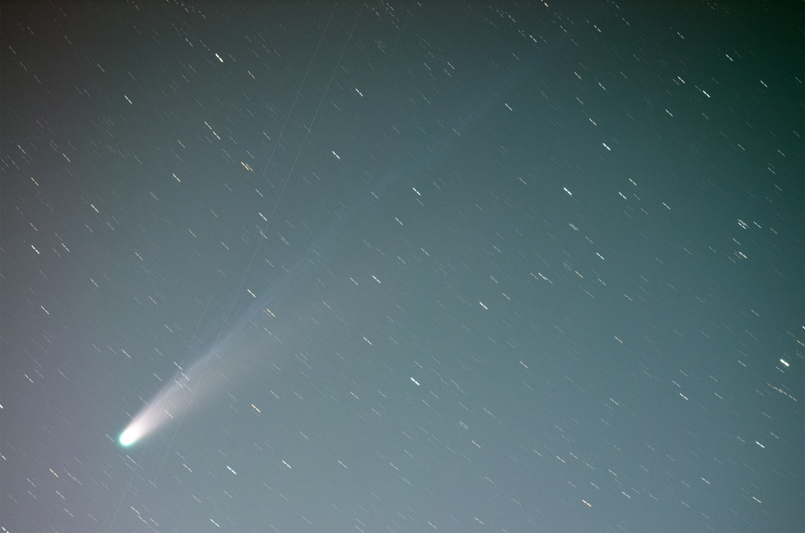 イオンテイルを描出するために撮影した全画像をスタッキングしました。