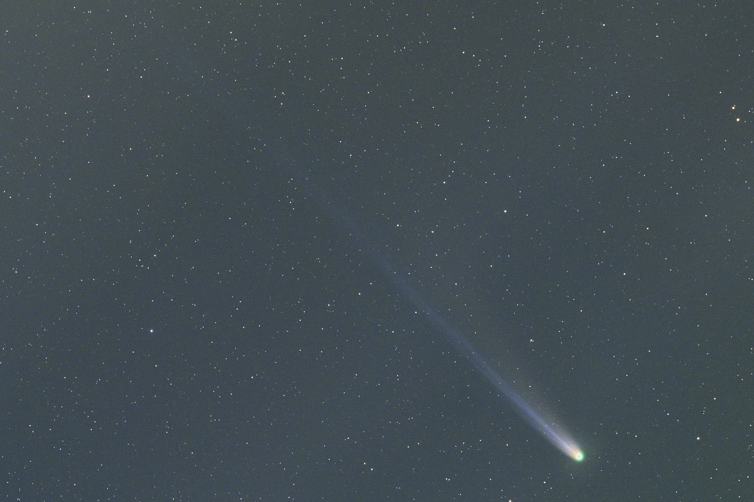 10月30日のレモン彗星 (C/2025 A6)を200mmで捉え400mm相当にトリミングした画像になります。 巻雲が広がる悪条件下ではありましたが巻雲の隙間に位置した2分間を捉えることが出来ました(月明りがあるため巻雲が照らし出されバックグラウンドがムラムラ状況となりました)。 また、8×56双眼鏡で楽に確認でき4.0等と見積もりました(尾も双眼鏡視野をはみ出すのが確認できました)。