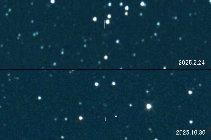 2025.2.24 → 16等級前半 2025.10.30 → 16等級前半 2025年8月26日が近日点でした。 地球との位置関係により2025年の春と2026年の春に 16等級という予想です。