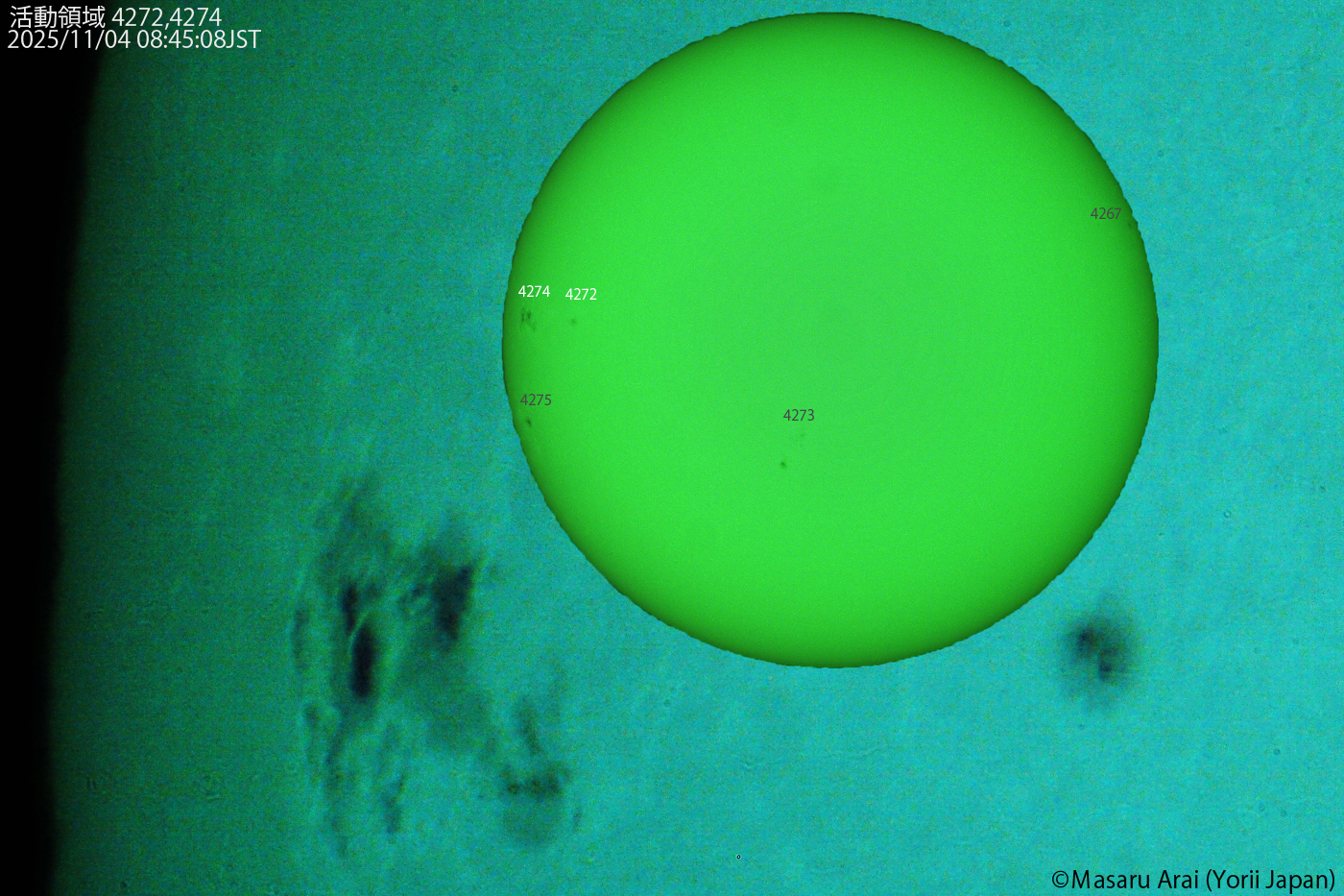 ・シーイング3/5 、透明度4/5 ・活動領域 4272の東側の大きな黒点群に、4274と番号がつきました。