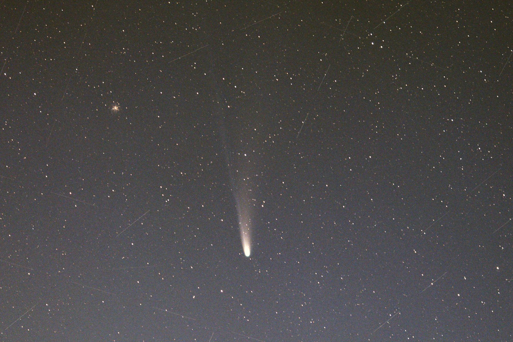 三脚固定で撮影したデータで、人工衛星ができるだけ入らないようなコマを選んでコンポジットしました。 M12球状星団も写っています。
