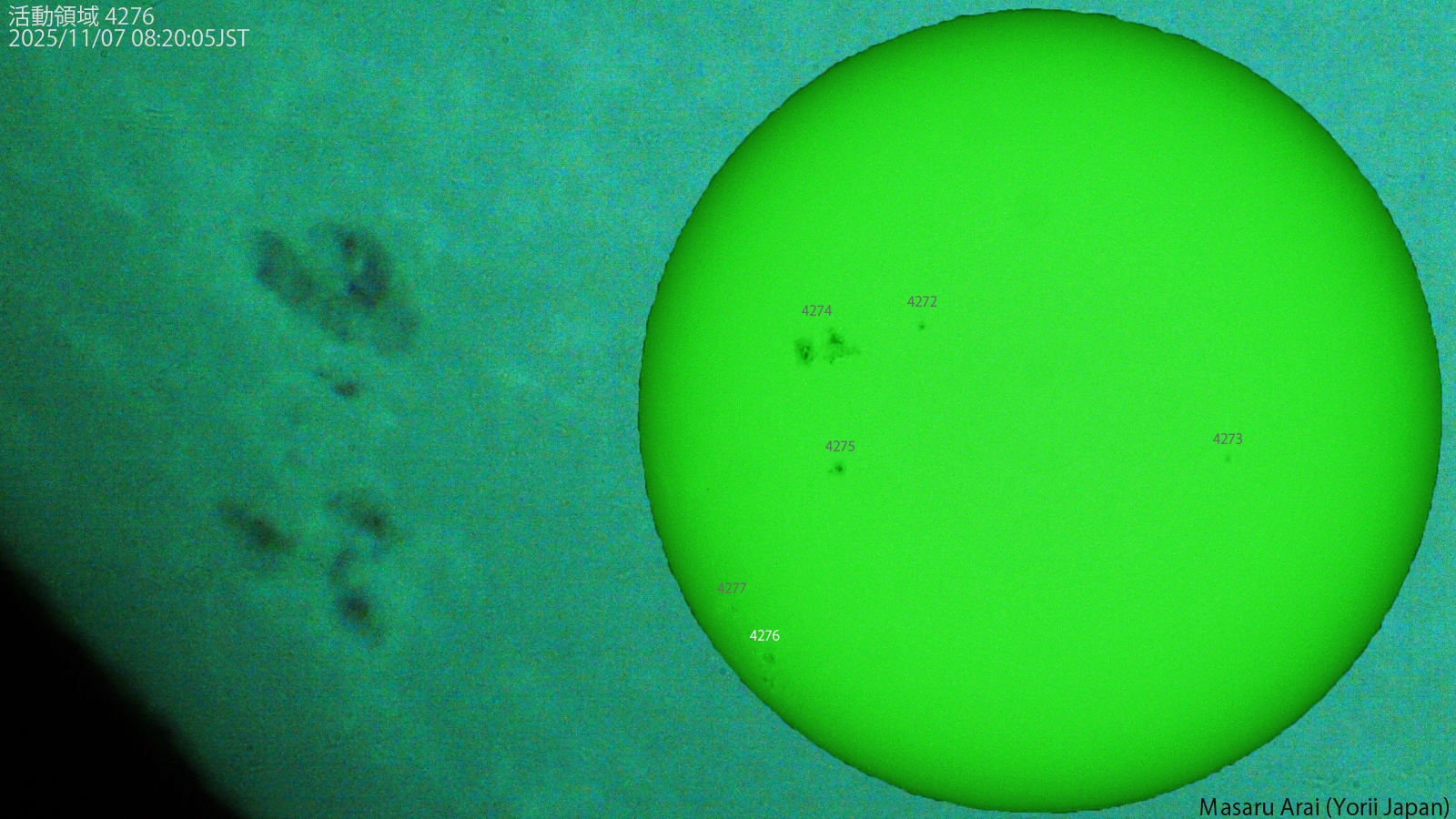 SE120L+DMC-GH1よる、活動領域 4276( Dao/--- ) です。 NICT情報:活動領域4274などでCクラスフレアが数回発生し、最大のものは、活動領域4277で8日10時28分JSTに発生したC4.8/SFフレアでした。