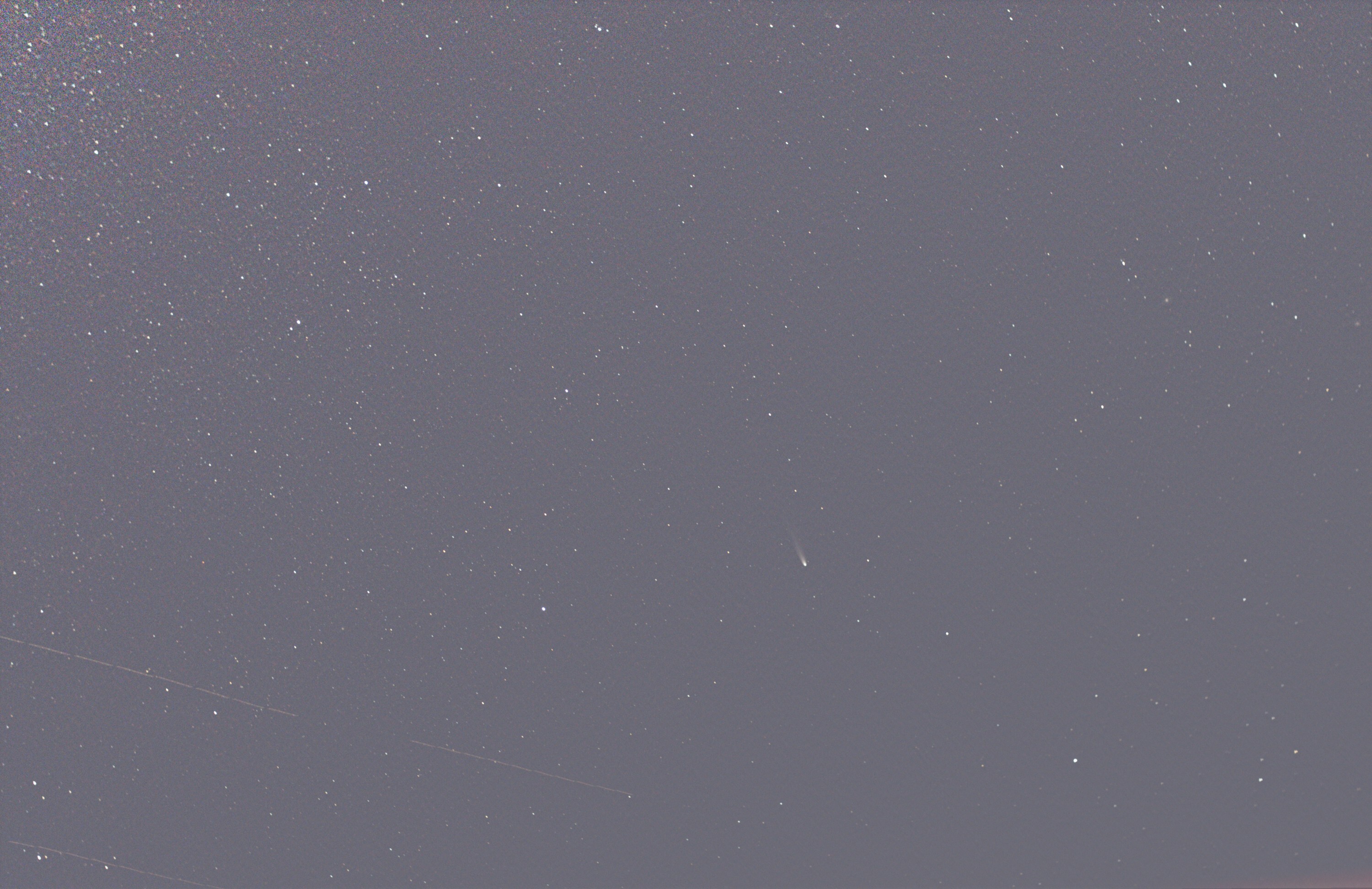 17:40~17:46に撮影の画像40枚を、SI10でメトカーフ合成しました。 自動導入の経緯台での撮影です。写野回転の黒ぶちを若干トリミングしてあります。 トラバースを、SYNSCANによる制御で便利に使っていますが、一回の撮影で複数種類のトラブルが出ます。 それでも純正アプリより、まだずっーとマシなのが泣けます。 今回は、タブレットの<>キーが一切効かず、恒星時追尾すら動きませんでした。 導入の心配がなければ、スイッチONで恒星時追尾の昔ながらの赤道儀が使い良いです。