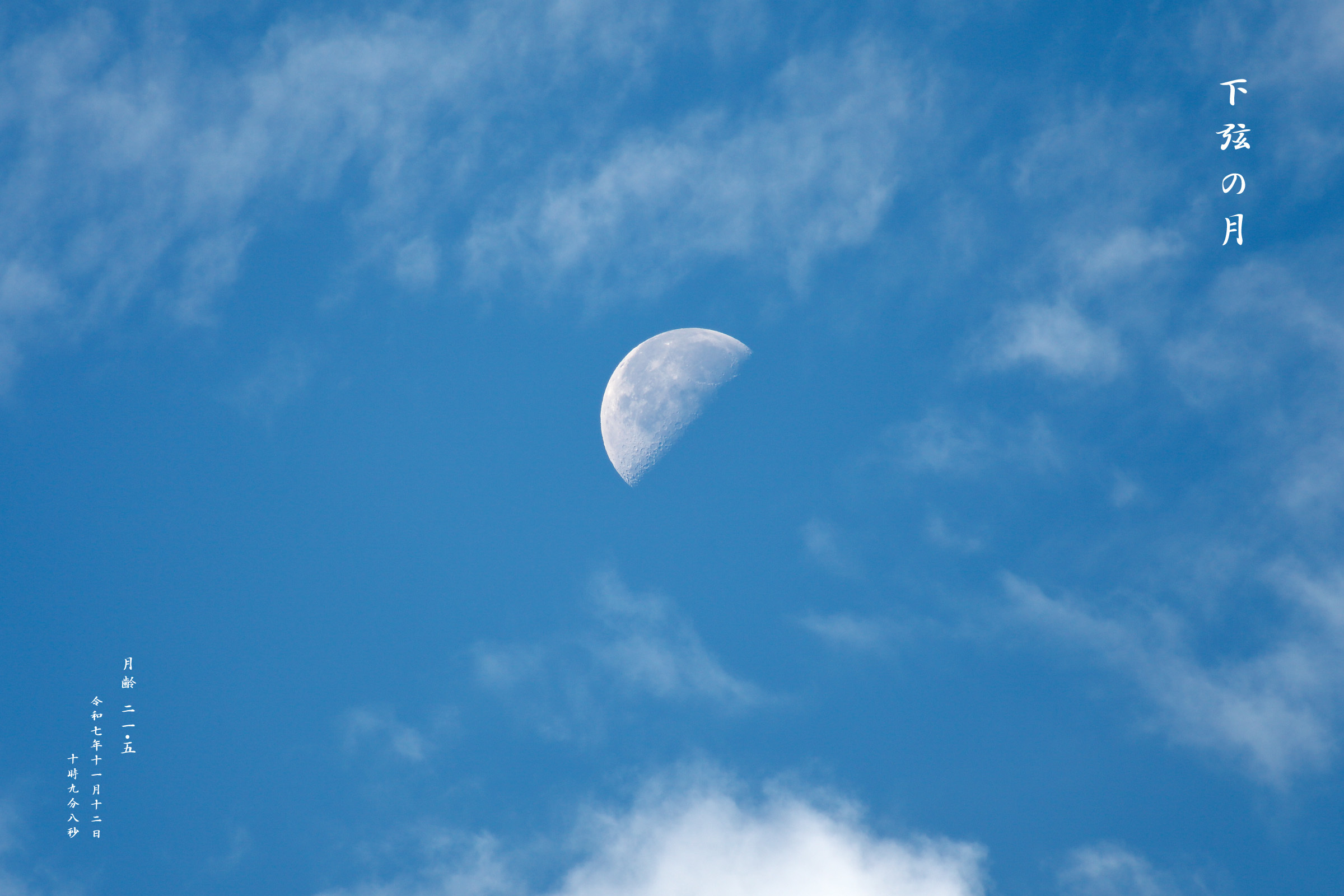 雲が多く、なかなか切れ間がありませんでした。本日の「下弦」は14時28分。