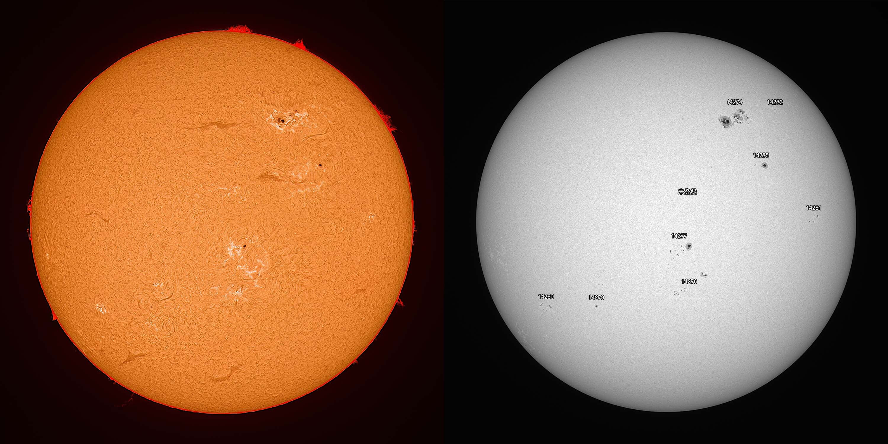 光球面:FireCapture、ROI 3600x2400、Gain 100、1.85msec x1000、撮影時間 31秒/プロミネンス:FireCapture、ROI 3600x2400、Gain 300、1.85msec x1000、撮影時間 31秒