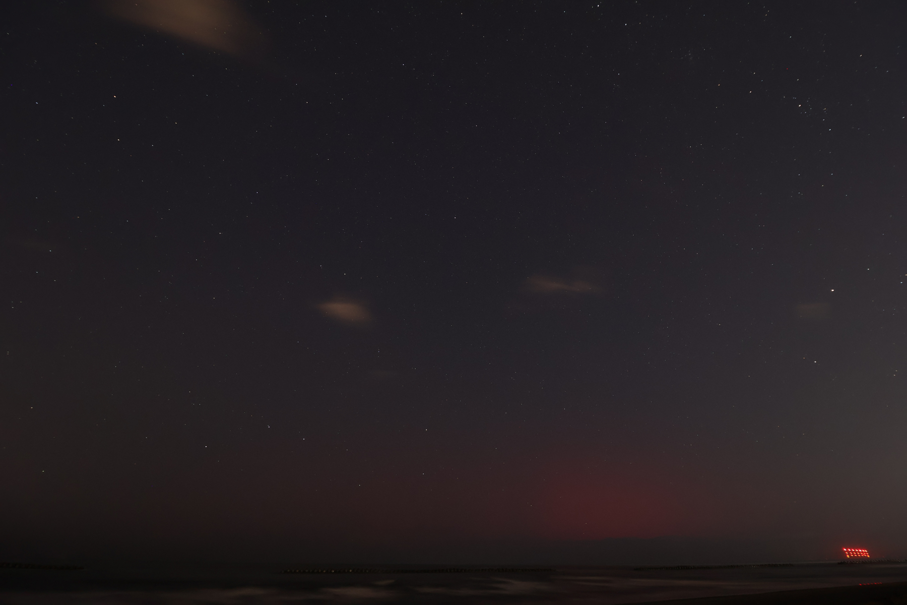 肉眼ではオーロラの存在はほぼ分からなかったです。何となく空が赤っぽいように感じたのは恐らく気のせい。