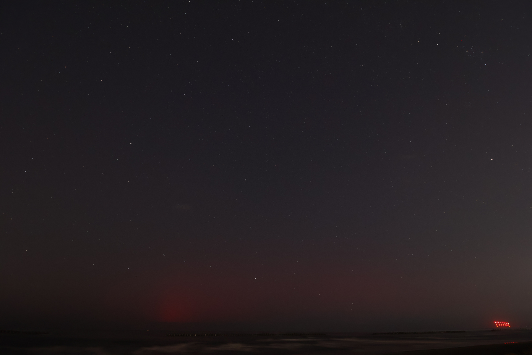 肉眼ではオーロラの存在はほぼ分からなかったです。何となく空が赤っぽいように感じたのは恐らく気のせい。