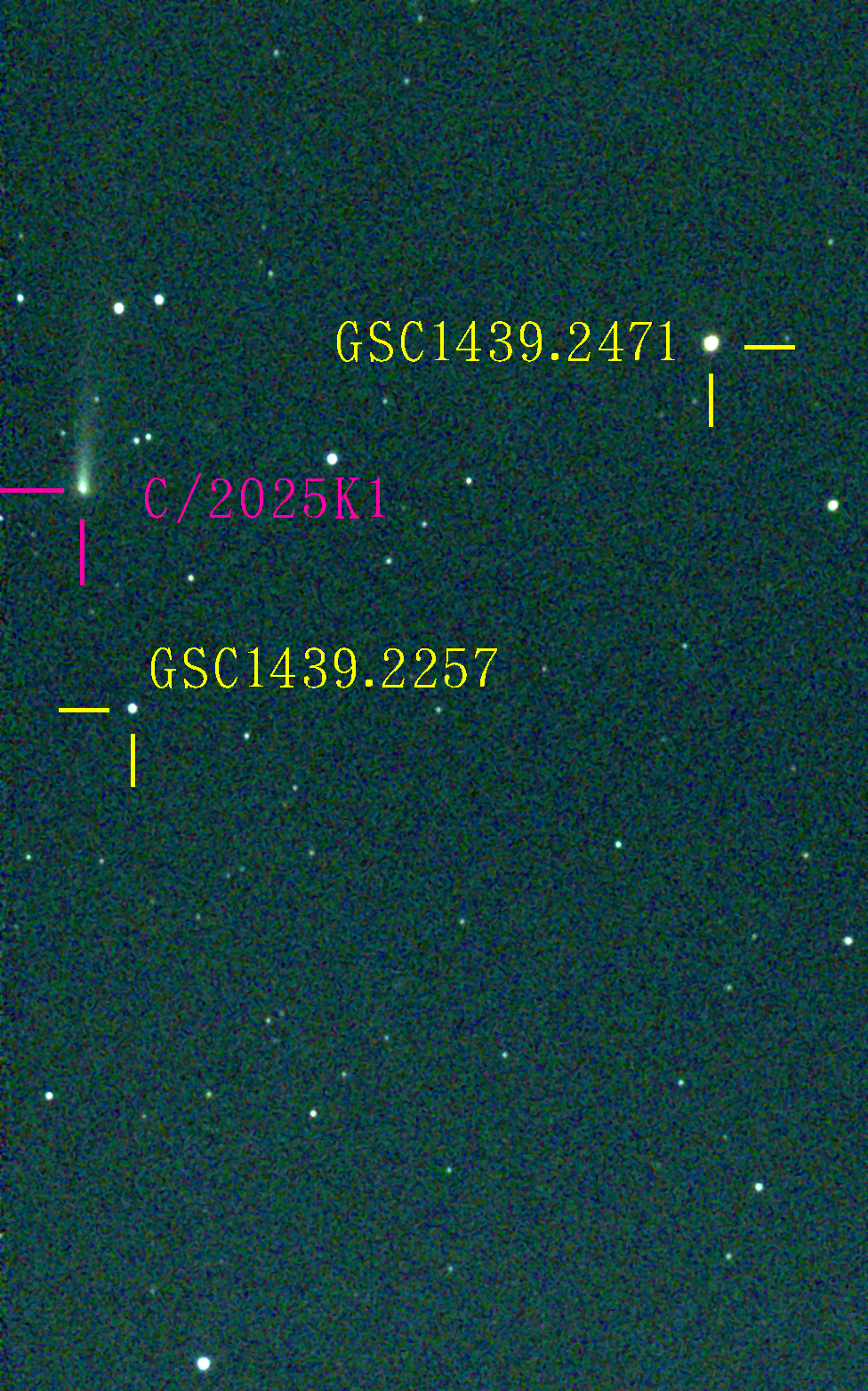 光害の影響が小さい場所、高山や高原で星を撮影をするという偏見は不要です。 光害でバックグラウンドが明るい都会の夜空で撮影した「彗星」です。 自宅ベランダから Seestar50 を使用して自動撮影しました。 これからは 都市部の ルーフガーデン や バルコニー から気軽に天体撮影をするのが流行になりそうです。 GSC1439.2257 10.24等 GSC1439.2471 7.97等