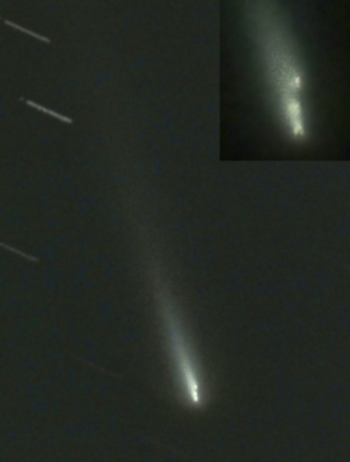 核が分裂しています。核が分かるよう露出を抑えて撮りました。(実際には架台と極軸精度の問題で長時間露出は無理なので・・・)