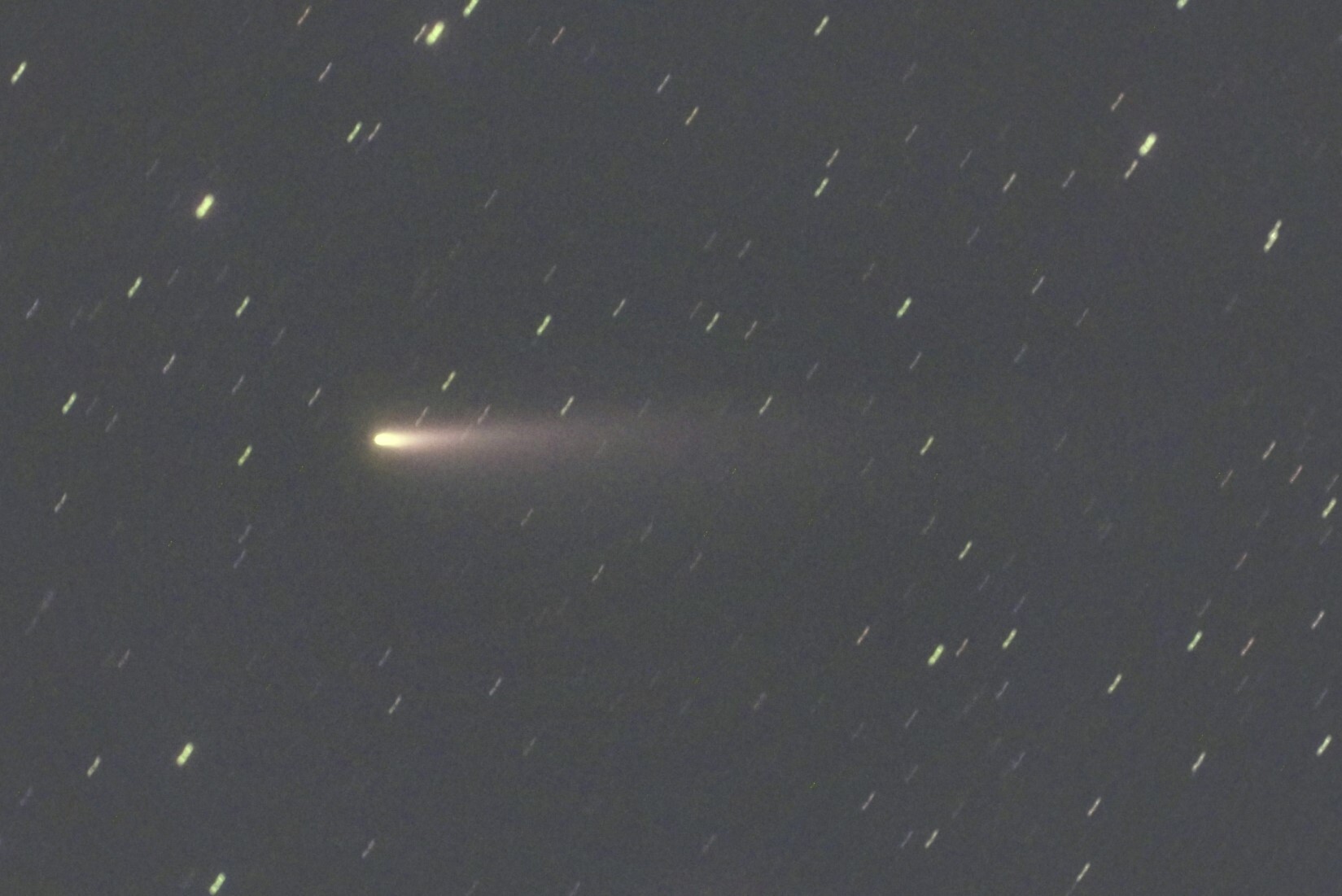 しし座の赤緯+20°線に沿って東へ移動中です。 明るさは9等級。 やっと木立のてっぺんから姿を現したので撮影できました。