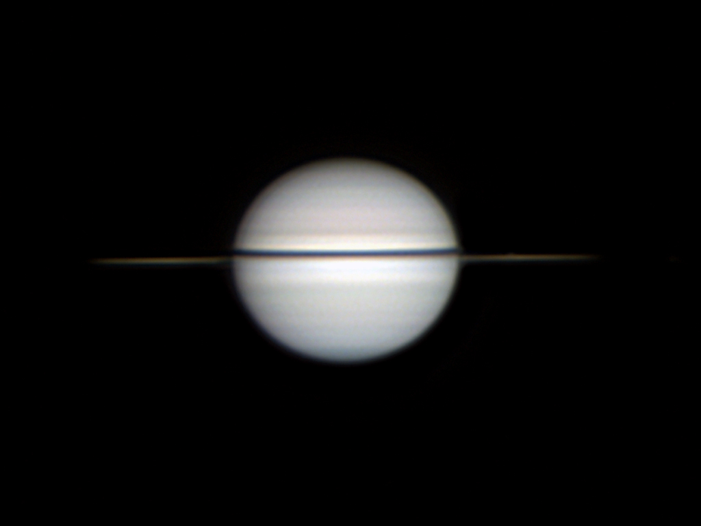 環の準消失前夜の土星です。24日は天気は下り坂です。 シーイングが悪く、細い環は太くなってしまいました。