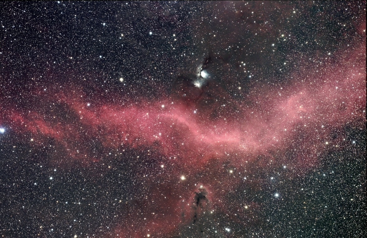 M78 FCT-65D SXD2赤道儀 ASIAIR ガイディング カメラ ZWO 2400MC PRO 65D FUレデューサー0.65× F4 焦点距離260mm フィルター IDAS HEUIB-II ・M48S ゲイン100 冷却温度-10° 120秒 103枚スタック ノートリミング ステライメージ10で処理 BXT系 AI系 処理不使用