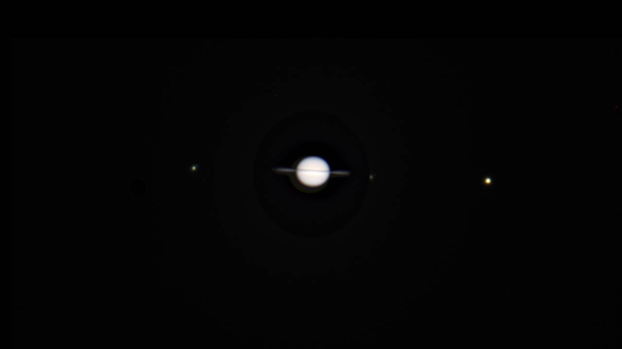 土星本体と衛星を露出を変えて目で見えるような感じに仕上げました。