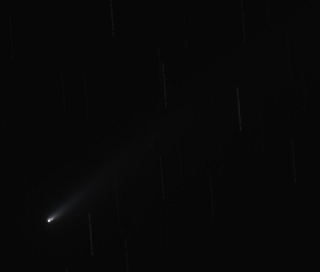 感度と露出時間を抑えてみました。彗星核が3つから2つに減っていますね。1つは噴出物質を消耗しきったのでしょうか?