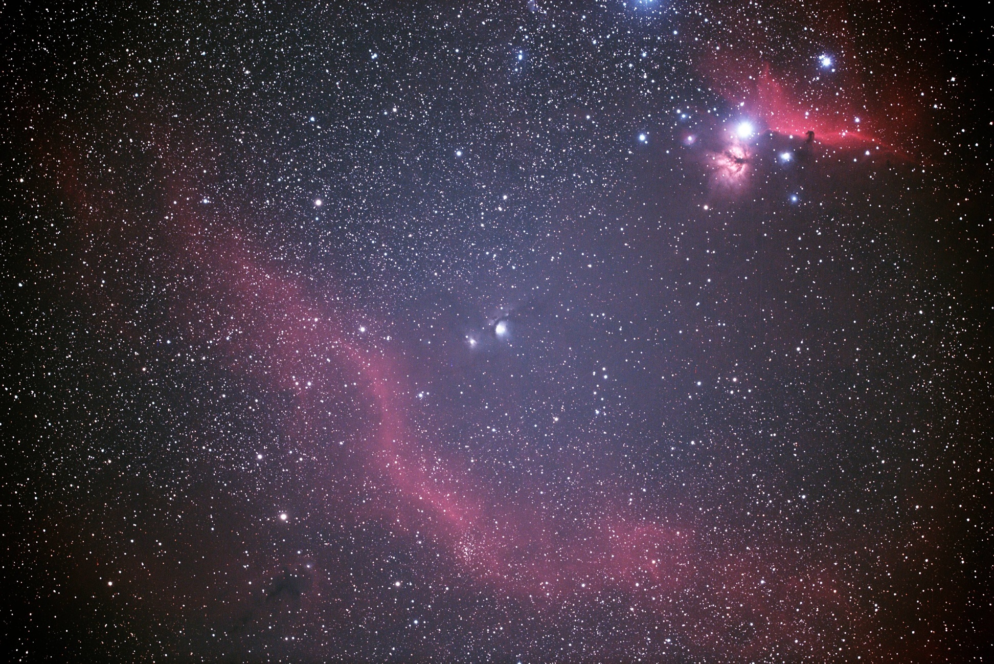 オリオンを囲むようにして見える赤い帯馬の形に見える馬頭星雲その中間にはウルトラの国が見えます