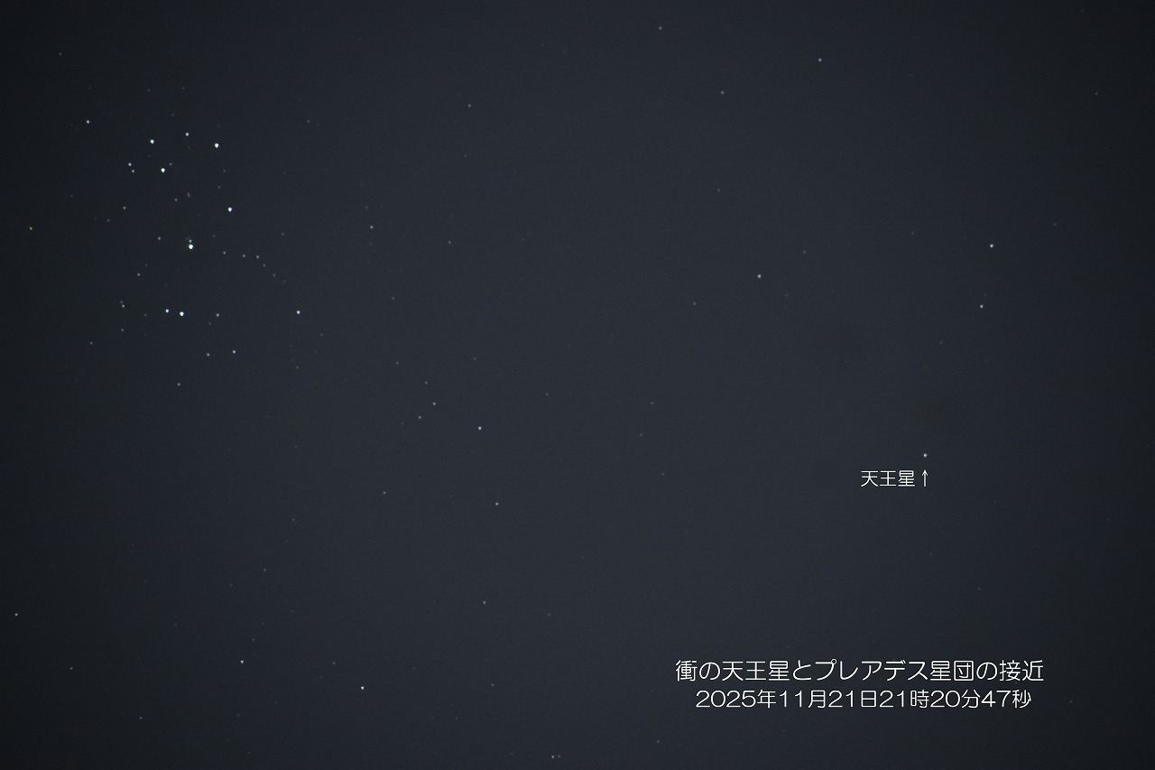 衝の天王星とプレアデス星団の接近 2025/11/21