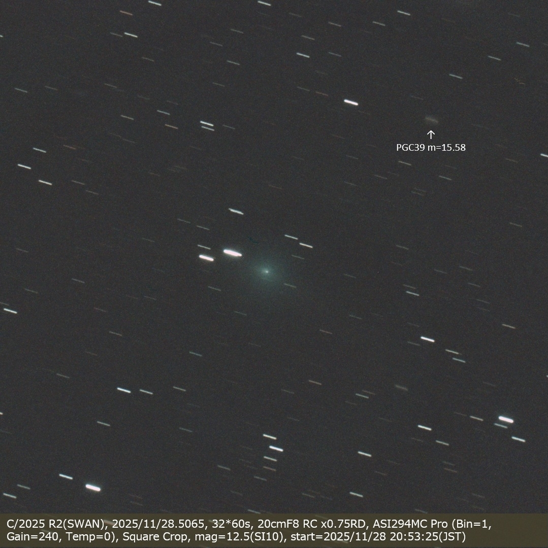 C/2025 R2(SWAN), 2025/11/28.5065, 32*60s, 20cmF8 RC x0.75RD, ASI294MC Pro (Bin=1, Gain=240, Temp=0), Square Crop, mag=12.5(SI10)