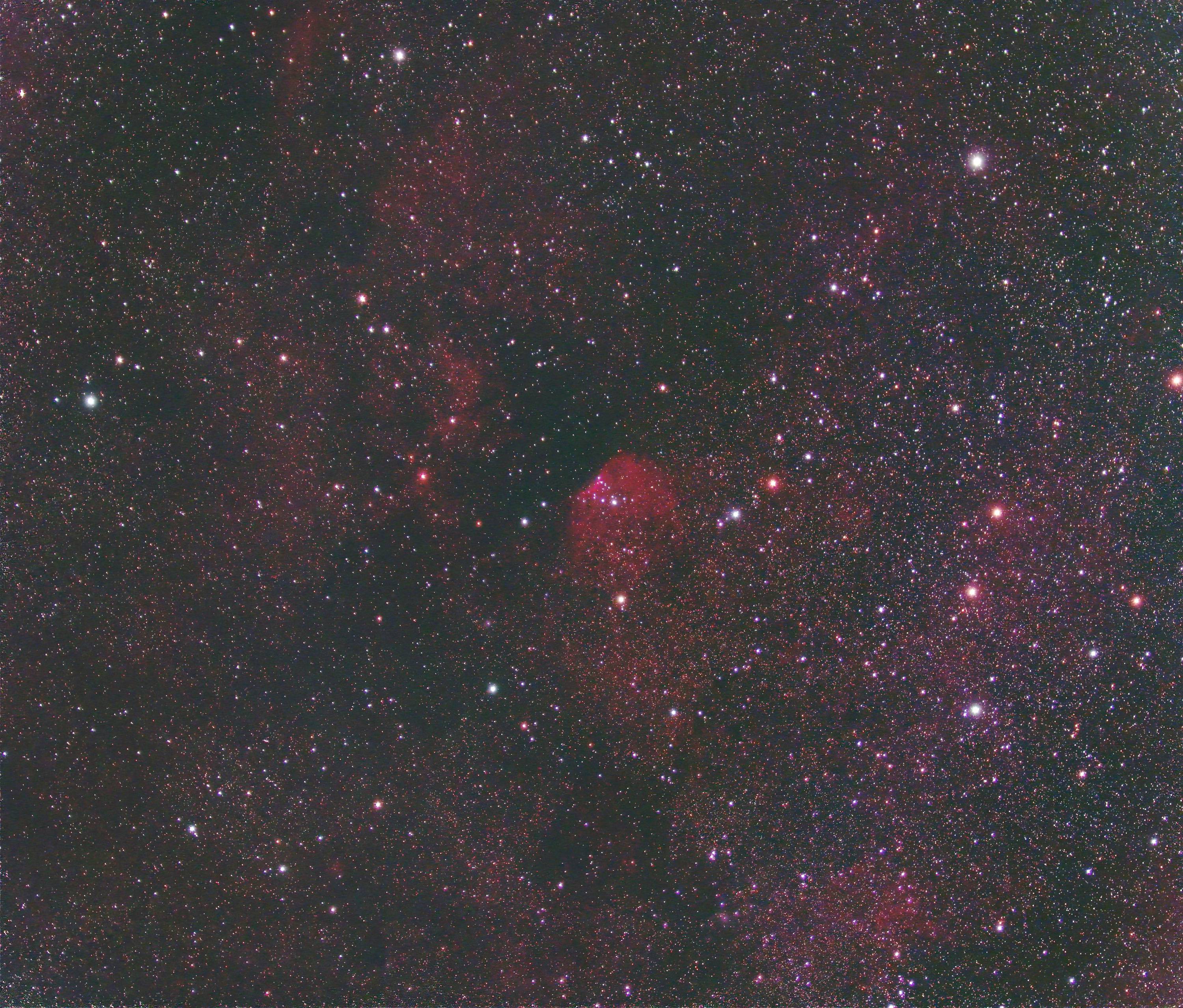 ケフェウス座の散光星雲 Sh2-140付近を150 mmの 3時間露出で撮りました。月があり、ナローバンドの CBPフィルタを使い撮影しました。