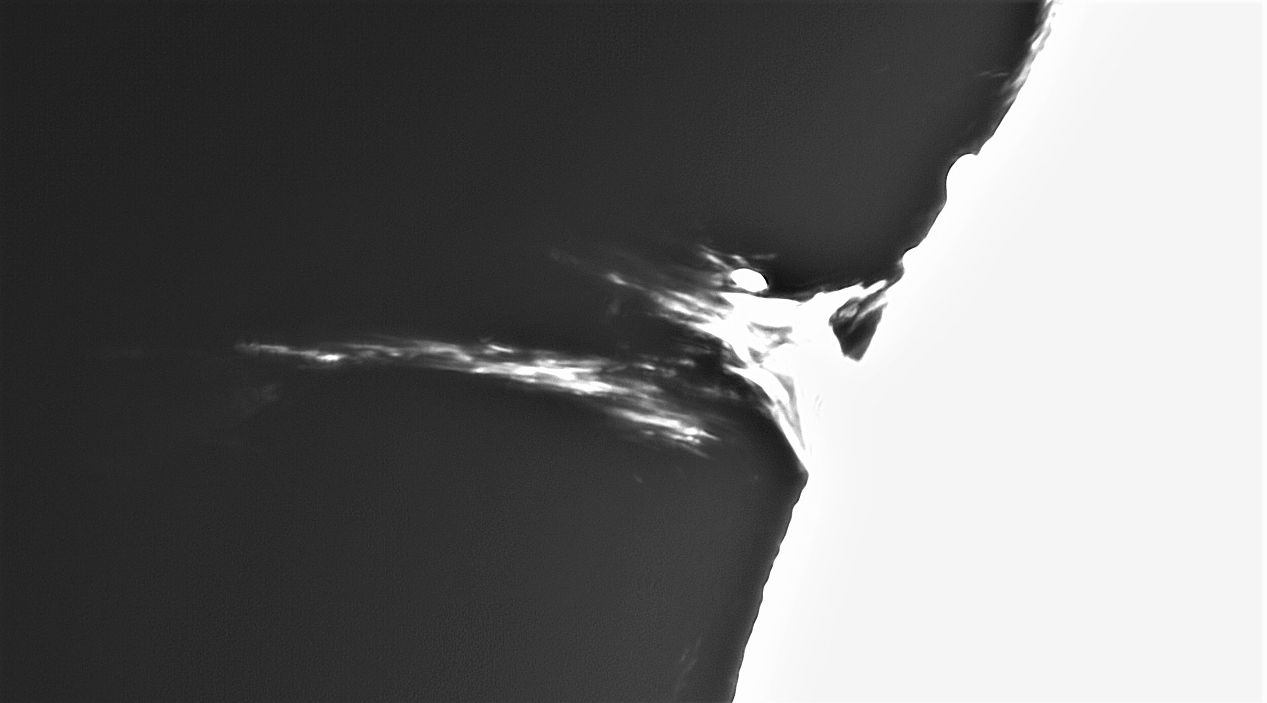 極端紫外線画像では画面を大きくはみ出して噴出していますが、Hαでその迫力を捉えるのは難しいです。