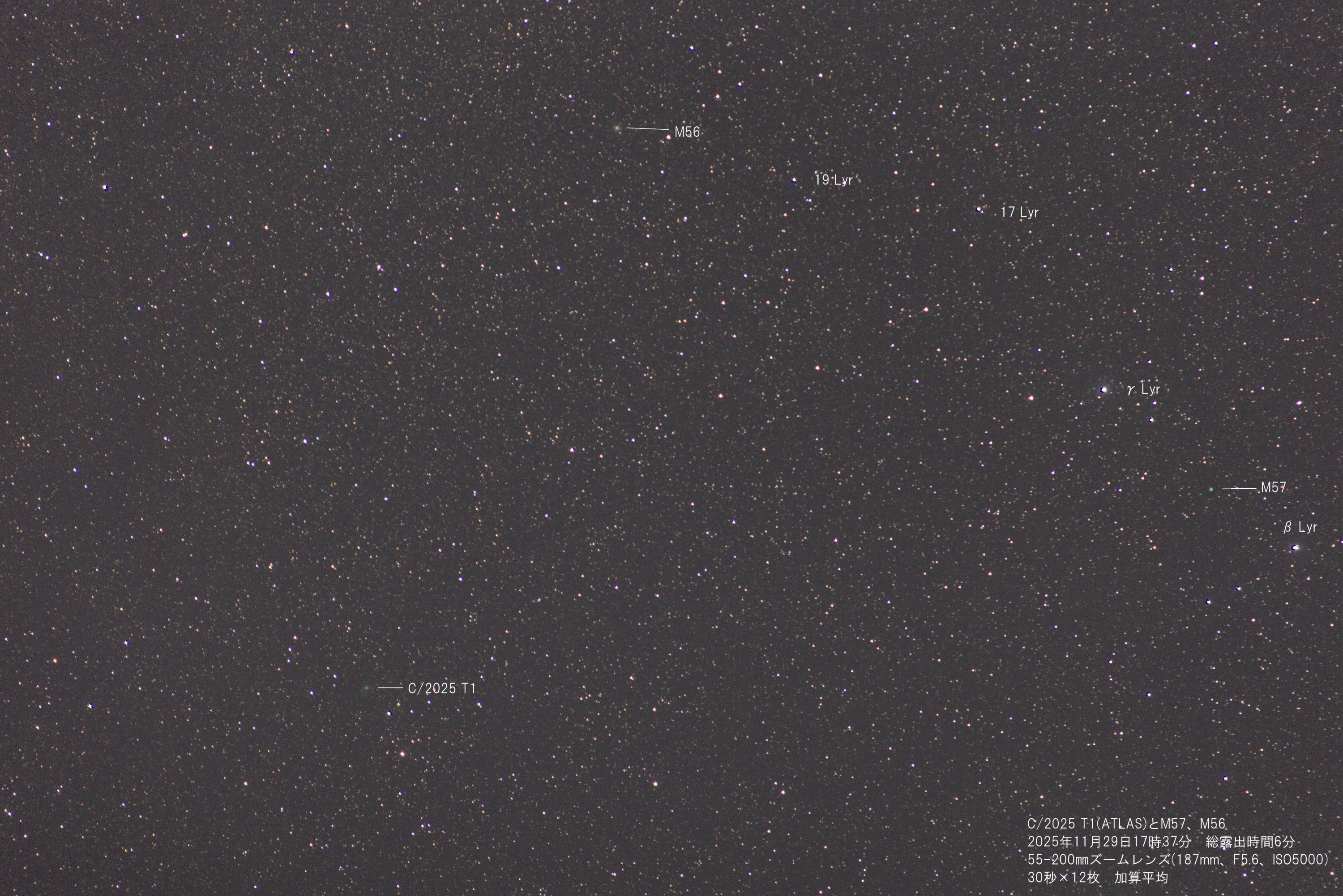 Crane94611月29日のC/2025 T1(ATLAS)とM57、M56