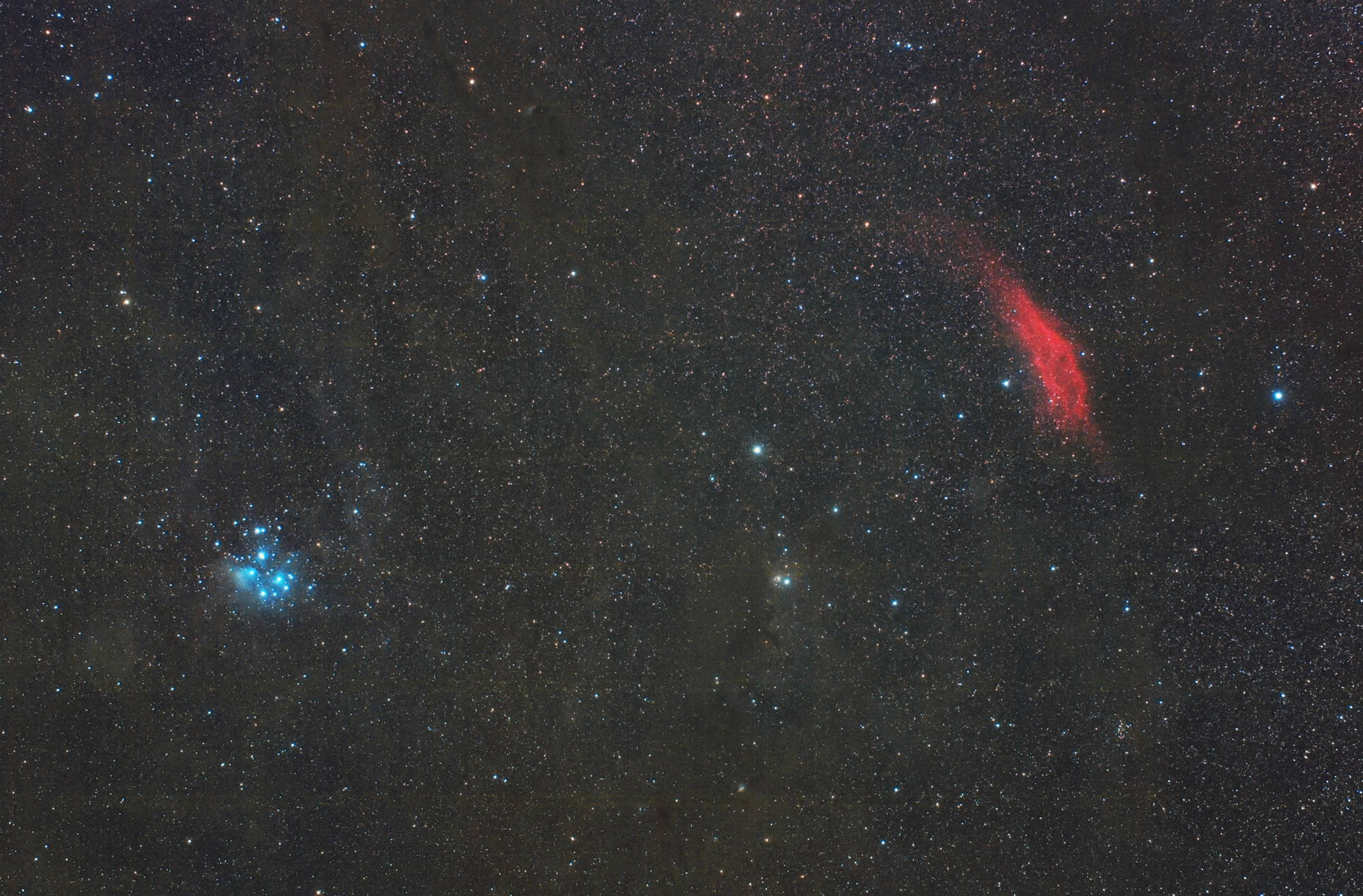 連休の好天に撮影したすばるとカリフォルニア星雲です。青と赤の対比が大変美しくつい撮ってしまいがちです。