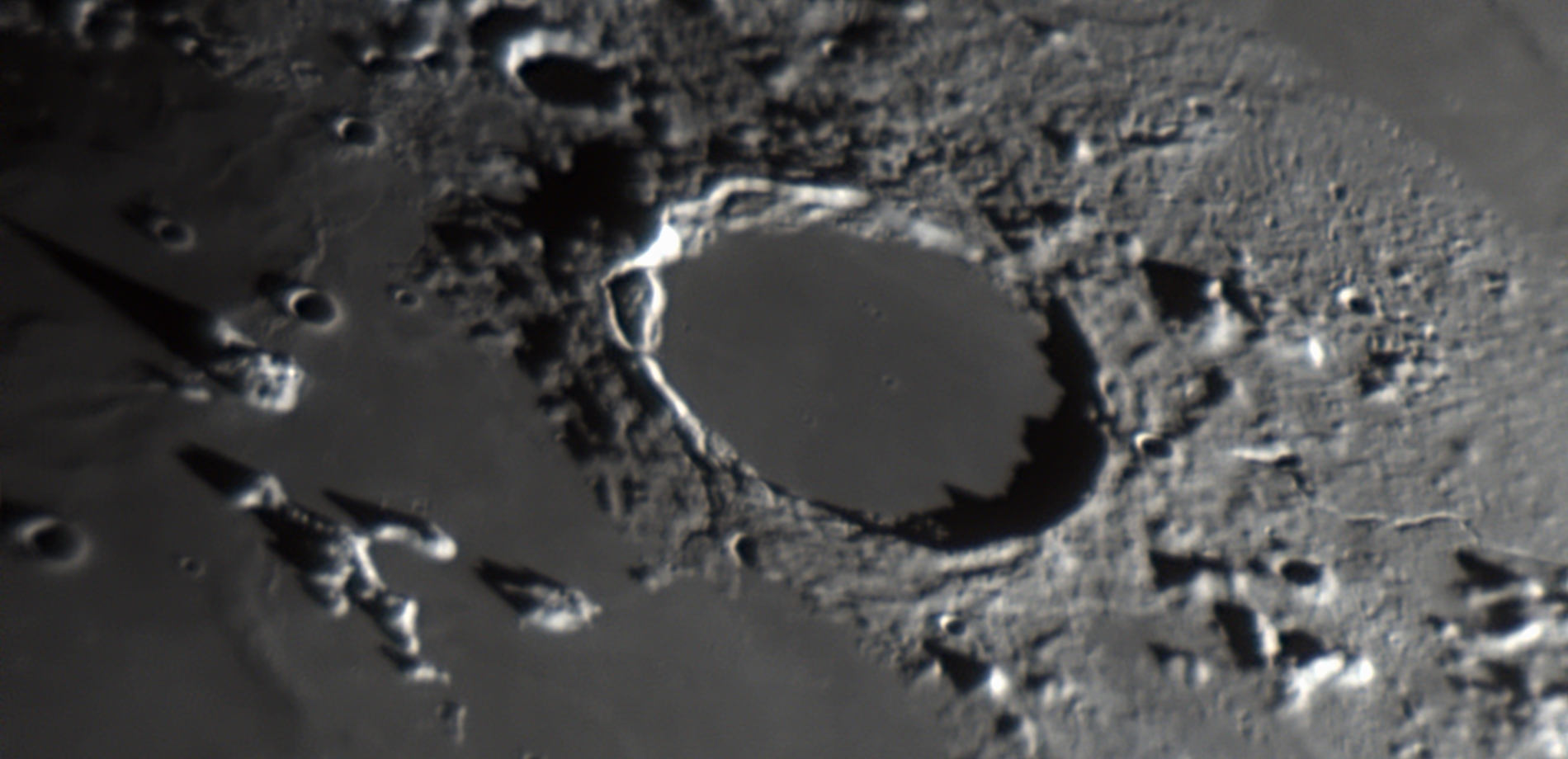プラトーの内部にある小さなクレーターを狙いました。 シーイングは悪かったのですが5個のクレーターが写りました。