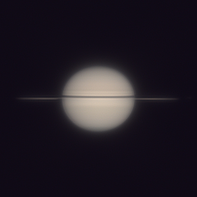前日(22日)よりも輪の輝きが若干落ちていますが、本当に暗くなったのかシーイングの差によるものなのか判別できません。私の撮影は他の方に比べて輪が明るく見えていますが、今年は眼視と撮影での写りに乖離が大きすぎるため日ごろは調整しないGammaで見え方を近付けました。背景が明るくなることでアーティファクトが目立ちやすくなる欠点もありますが、通常でも目立たないだけで若干は出ているものなのでそのままにしました。撮影の継続(一貫)性も考えましたが、眼視ではっきり見えているものがまるで消えているかのように写ることに違和感を感じ採用しました。