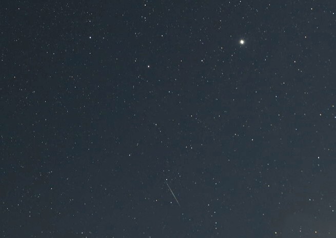 ふたご座流星群、ピークの13/14夜は雨… 14の夜は撮影できそうだったので、暗い空を求めて車で移動。しかし、途中から雨がポツポツ。 仕方なく、街明かりが気になる自宅近くまで戻ってきて撮影しました。 雲に悩まされながらも、何とか1枚入ってました。 体感的には、結構流れていた感じです。 …暗い空で撮りたかった。残念。
