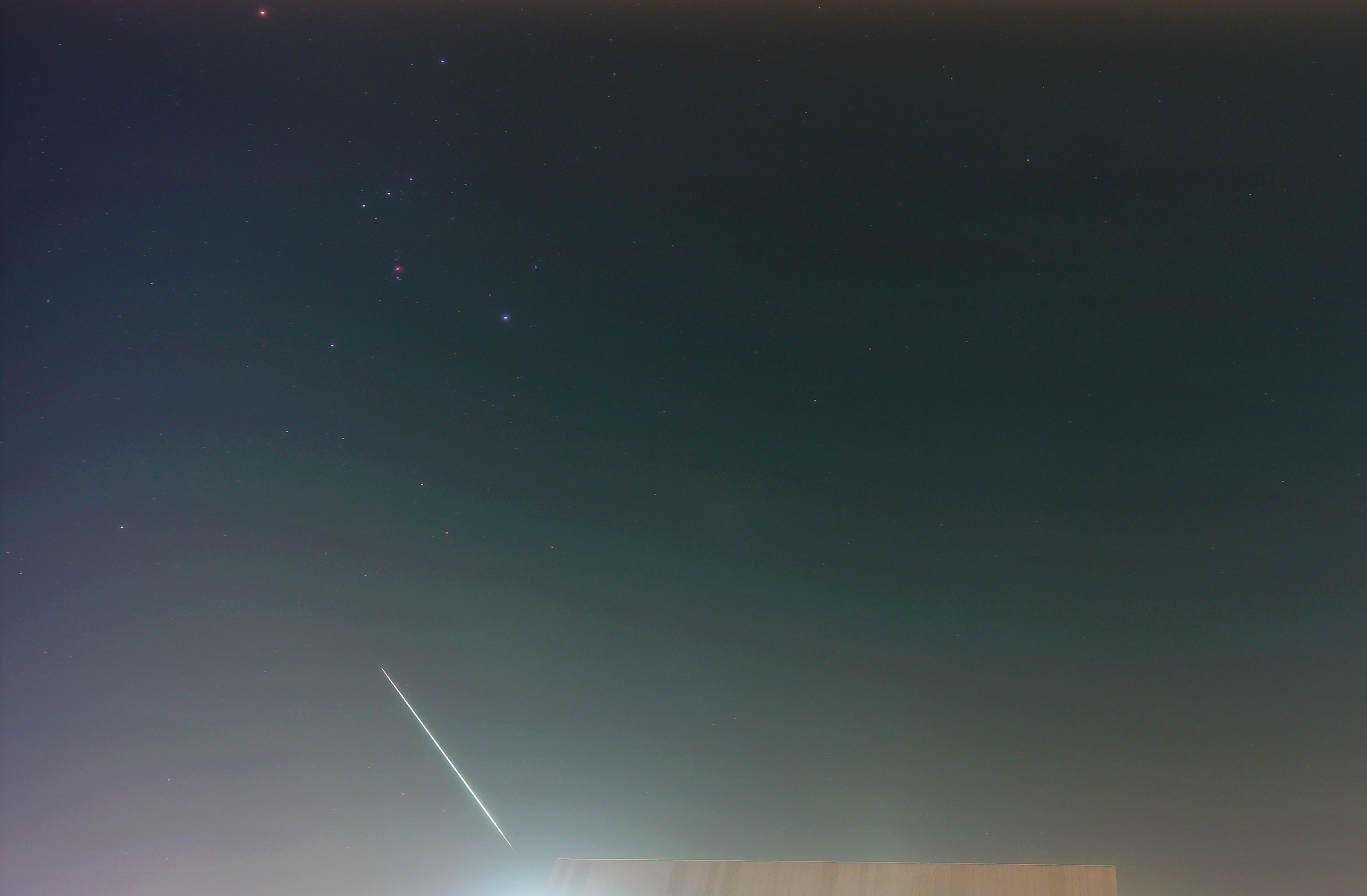 月明かりのない絶好の条件、火球が写りました。 ISO400,F2.8,15sec、固定撮影 日本>横浜市
