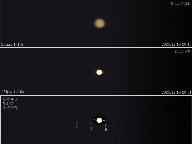 タイタン以外の衛星は、レア、テチスが映っています。ディオネは土星に近すぎて映っていません。