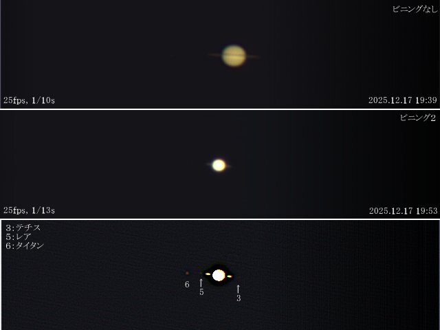 タイタン以外の衛星は、レア、テチスが映っています。ディオネはタイタンに近すぎて映っていません。