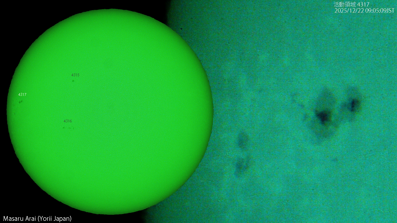 SE120L+DMC-GH1よる、4311 ( Cao/Dao ) です。 NICT情報:活動領域4316で、22日3時27分JSTにM1.3/SFフレアが発生しました。
