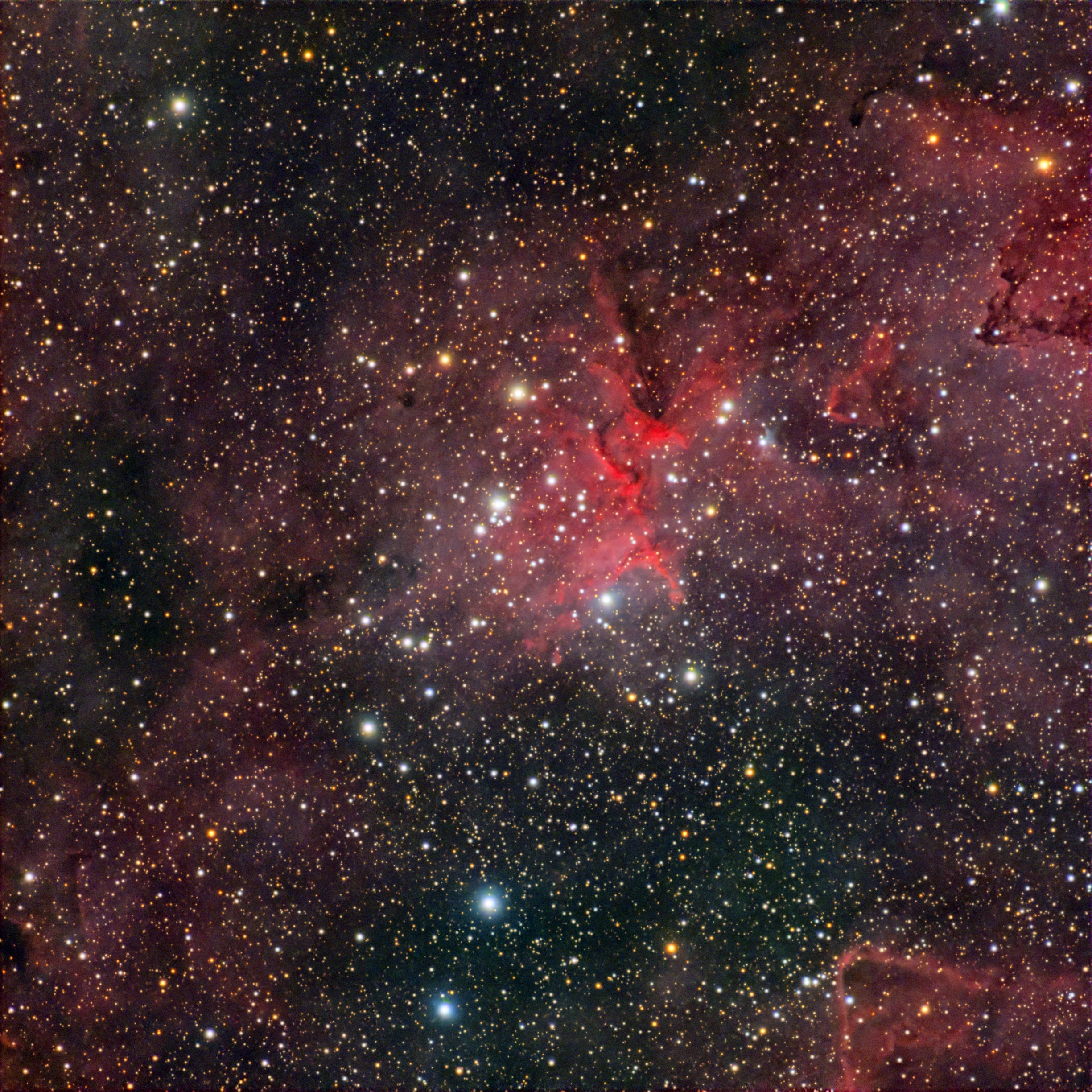 カシオペヤ座の散光星雲IC1805(ハート星雲)の中心部をクローズアップしたものです。
