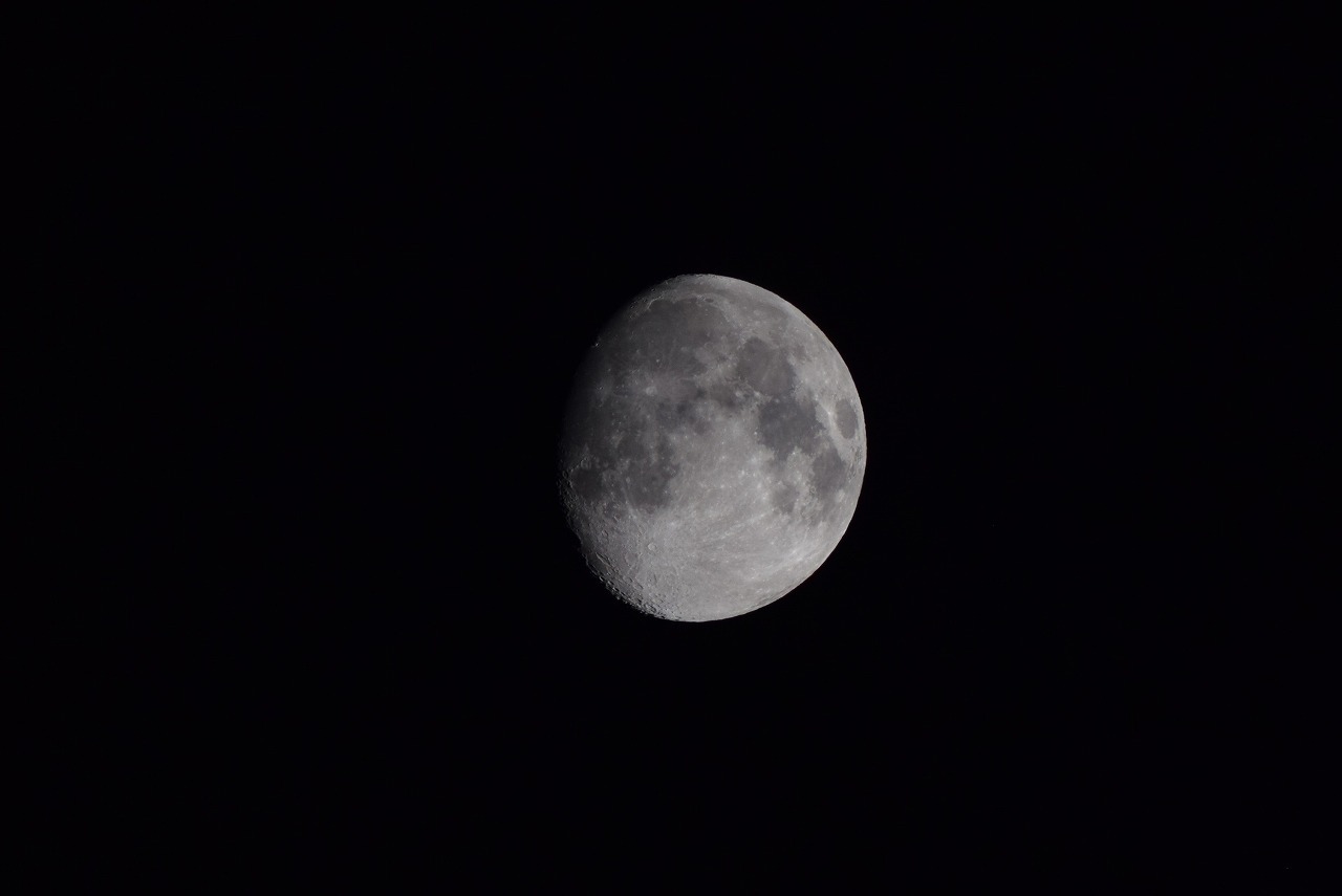 年越しのカウントダウンをしながら、年が変わった瞬間にシャッターを切りました。年越しのプレアデス星団食を起こしている月齢11.5の月ですが、年が変わる数分前から薄雲が広がってしまい星団の星々は見えなくなってしまいました。薄雲の中の月ですが、月はきれいに写っています。