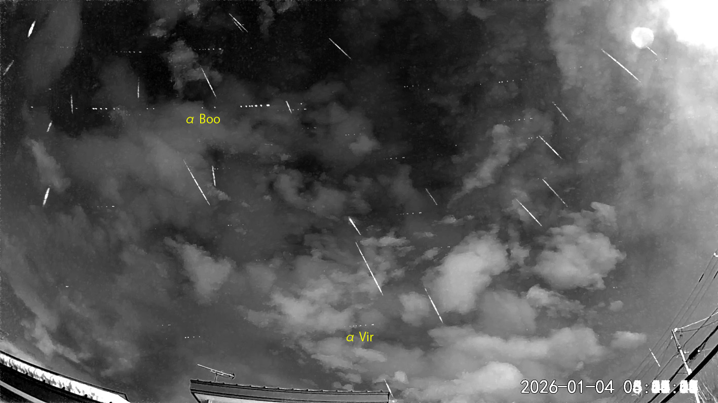 03:23から約3時間の27コマを処理しました。全般に雲多し。 ほぼすべての流星が、しぶんぎ群です。未明の画像を前半・後半で別々に投稿します。